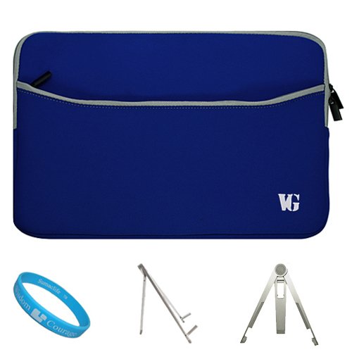 Magic Blue Neoprene Protective Sleeve Carrying Case Cover for BlackBerry Playbook 7-inch Tablet Compatible with all Models (16GB, 32GB, 64GB) + Silver Color Metal Stand for your Wireless Tablet + SumacLife TM Wisdom Courage Wristband for $19.99