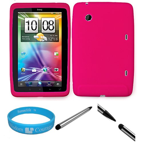 Hot Pink Premium Soft Silicone Skin Cover for HTC Flyer Tablet also compatible with Sprint HTC EVO View 4G Android Tablet + Dual Tip Soft Touch Stylus Pen + SumacLife TM Wisdom*Courage Wristband