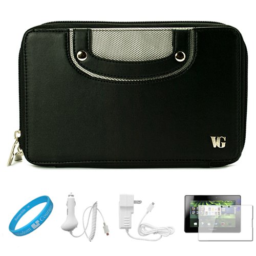 "Blackberry Playbook Tablet Leather Case Cover with Carrying Handles, Black + Clear Screen Protector + White Rapid Car Charger with LED Power Indicator + White Rapid Travel Wall Charger with LED Power Indicator + SumacLife TM Wisdom Courage Wristband" Overview